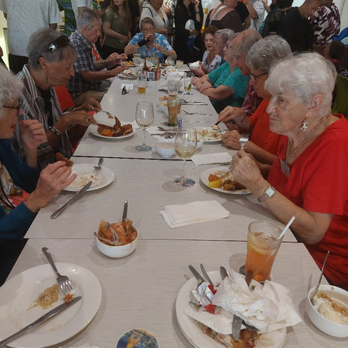 For our last trip in 2023, 36 of us headed off to enjoy an End of Year Feast at Redbank Plains Tavern. We stopped at Rocks Riverside Park at Seventeen Mile Rocks for a cupper and some Christmas cake. Then did a drive through Forest Lake, Springfield, Springfield Lakes and checked out the Brisbane Lions new headquarters before heading to Redbank and enjoying a very nice buffet lunch. It was very busy with a couple of large groups in the restaurant, but I am sure everybody got more than enough to eat. On our return journey we stopped off at the Hans Wacol Factory Outlook for people to purchase some small goods before arriving back in Redcliffe around 3PM. Great day had by all.